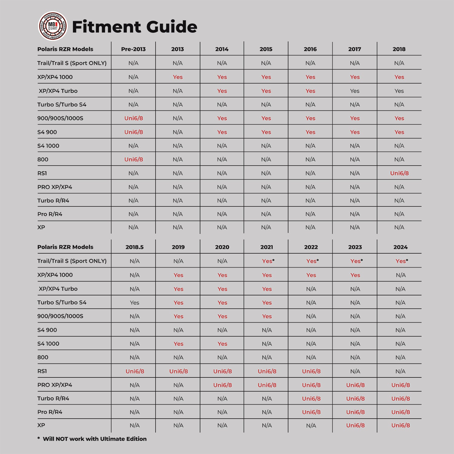 MBQR-ACC-1: RZR Radio and Dual Amplifier Harness is included with the system. RIDE COMMAND adapters are included. |