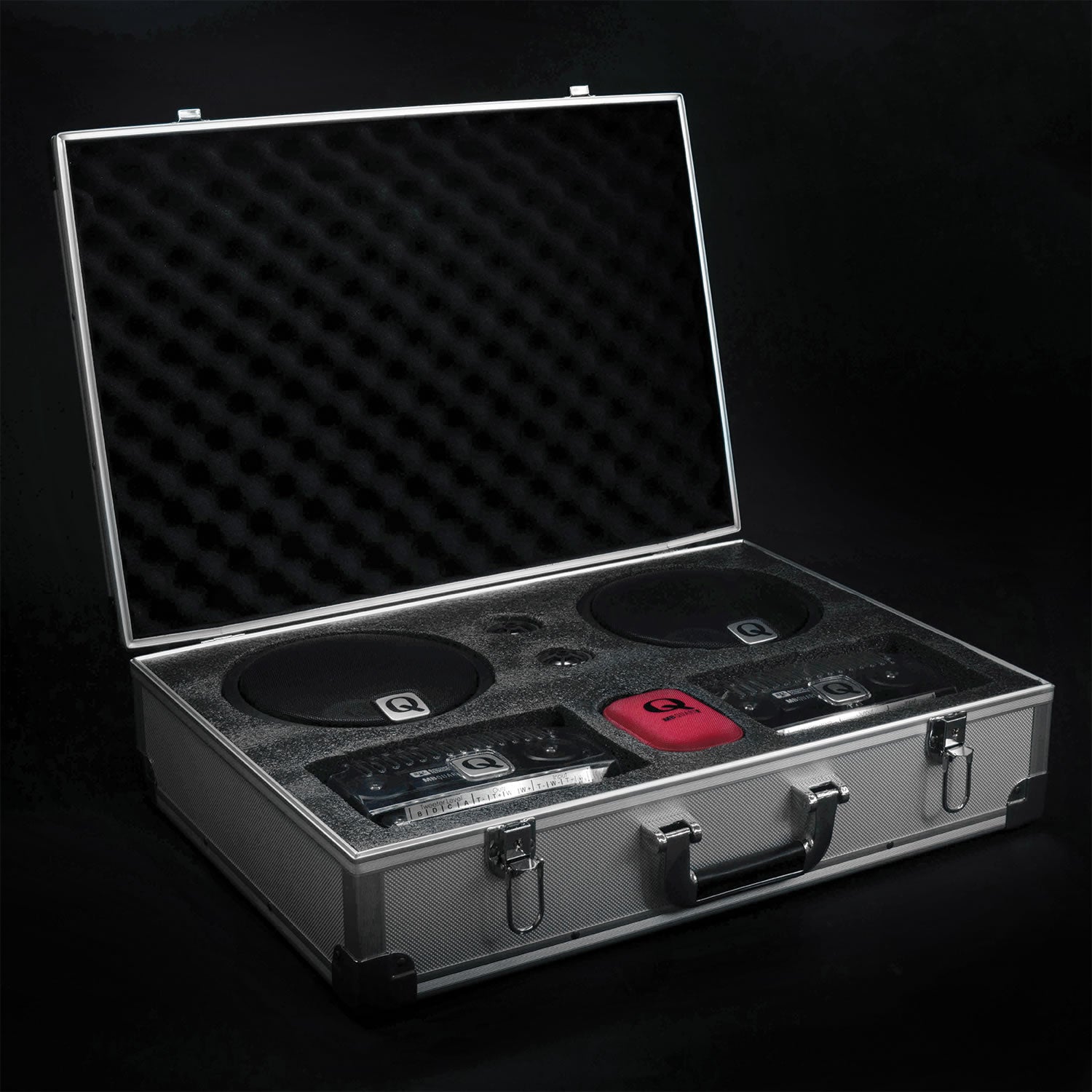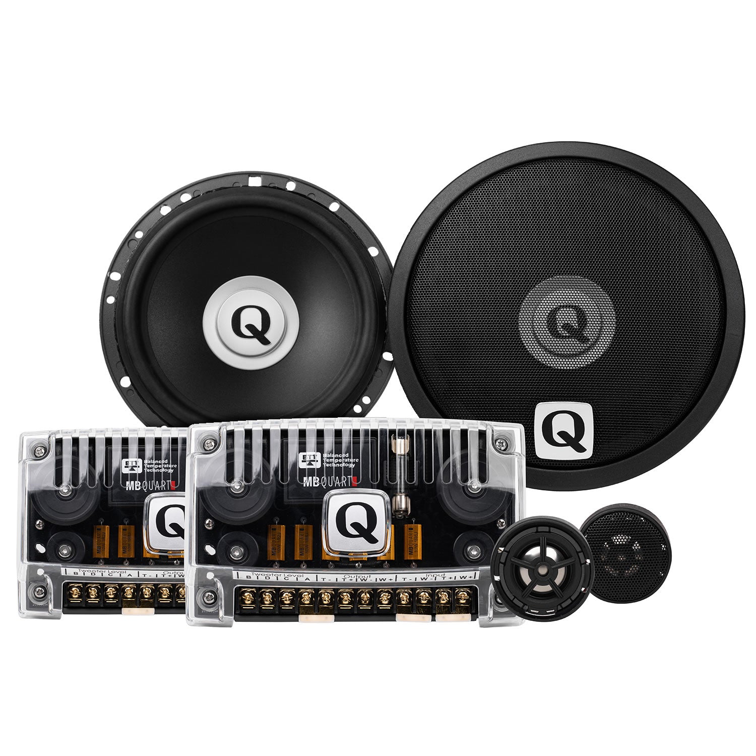 German built MB Quart 6.5″ Q Series 2-Way component speakers with 1″ titanium dome tweeter in a cast-aluminum housing, specially made to dissipate heat and external Q Control audiophile crossover networks.