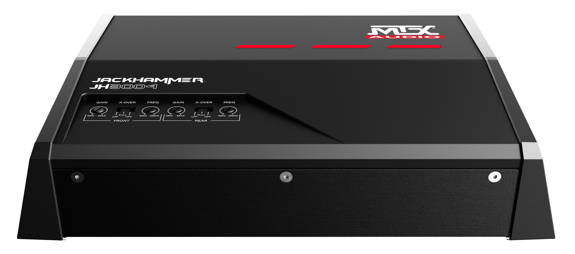 The JH3004 four channel amplifier powers high wattage speaker systems with headroom to spare, all without added distortion or over-heating during long hours of loud play.