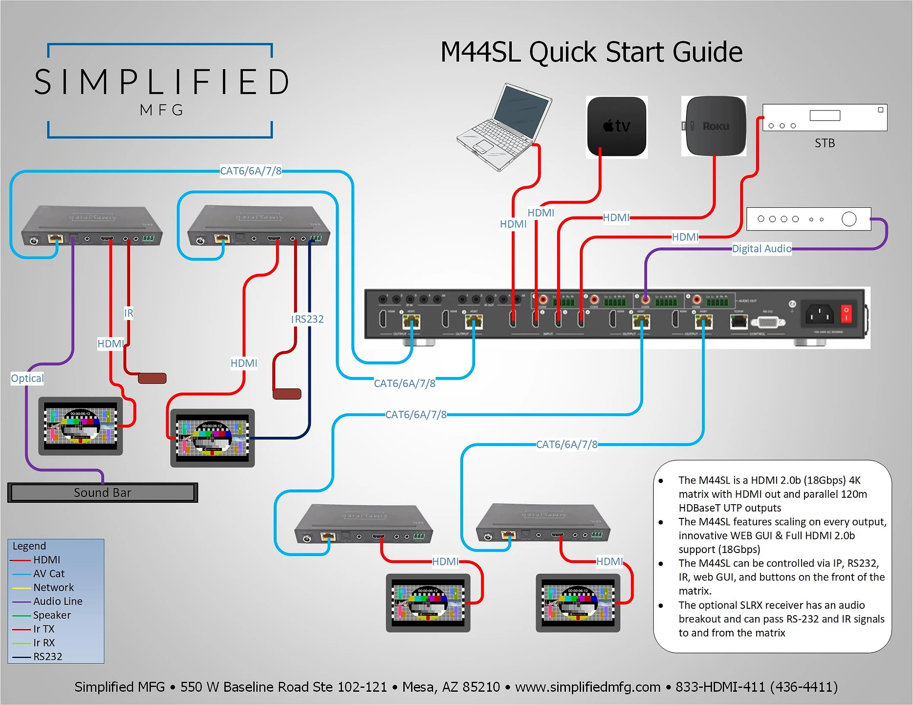 SIMPLIFIED 4X4 HDMI SCALING MATRIX W/PARALLEL 120M M44SL