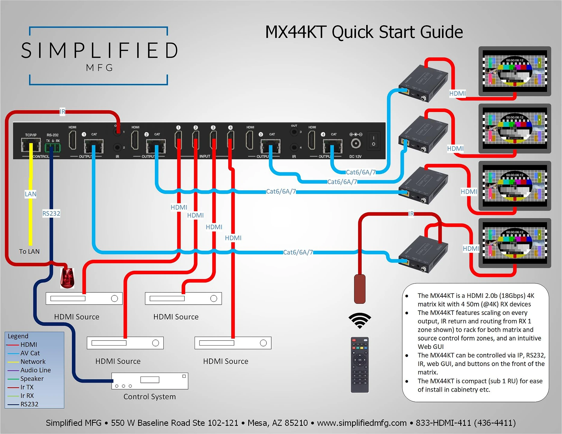 SIMPLIFIED 50M 4X4 SCALING HDMI MATRIX KIT W/ 4 RX MX44KT