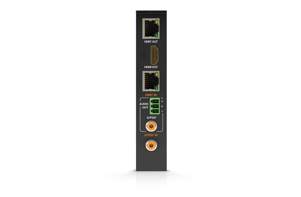 De-centralize sources connected to the H2X matrix platform with this HDBaseT input & output card. Accepting 4K UHD transmissions from 70m/230ft, this modular card allows source devices to be kept in-suit while making them part of the main distribution system.
